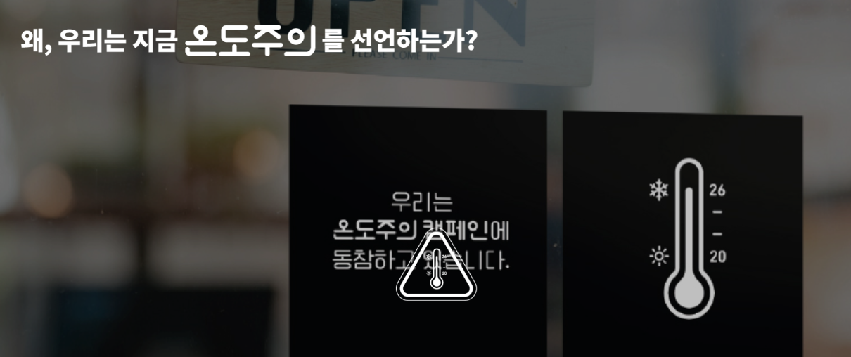 온도주의는 단순한 캠페인을 넘어, 기업·학교·공공시설에서 생활 실천형 브랜드로 자리 잡고 있으며, 이 캠페인에 참여하는 매장에는 ‘온도주의 스티커’가 부착됩니다.
